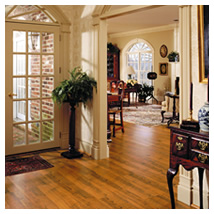 "laminated," to a dense wood core center and a synthetic backing material. It provides your home with an attractive and maintenance free hard surface flooring option that is versatile to fit an active lifestyle. Because it is engineered with layered construction and a high pressure laminate surface, it is virtually impossible for spills and scuffs to leave their mark. Simple and easy to maintain, laminate is an excellent choice for high traffic areas like hallways and family rooms, plus moisture areas such as kitchens and baths.